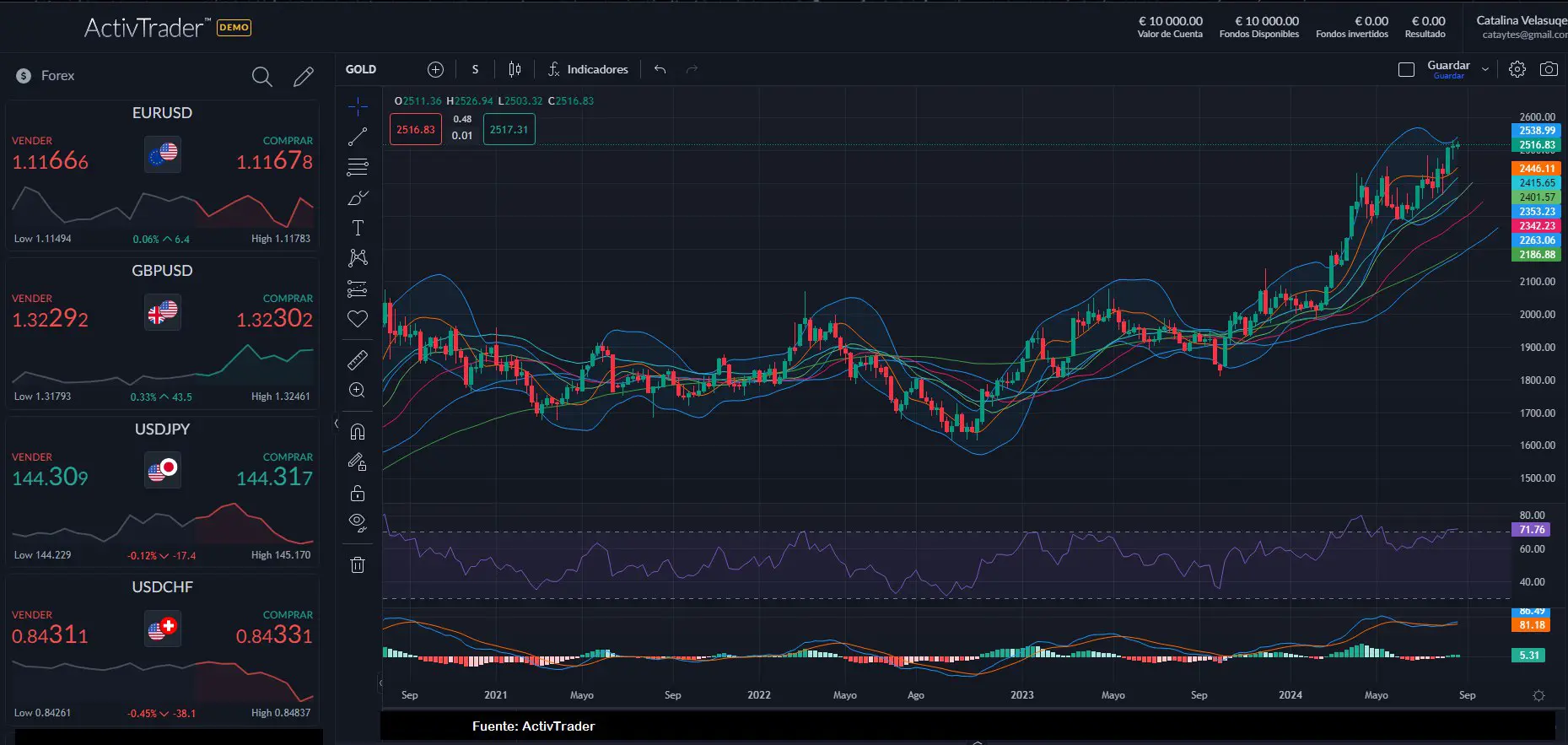 El mercado del oro ha vuelto a ser protagonista, alcanzando máximos históricos y captando la atención de analistas e inversores. Según datos recientes de ActivTrader, el oro al contado se mantuvo estable en un impresionante récord de $2,508.14 por onza, mientras que los futuros del oro en Estados Unidos subieron un 0,16% hasta alcanzar un nuevo máximo de $2,540.8 por onza durante las operaciones en Asia.
