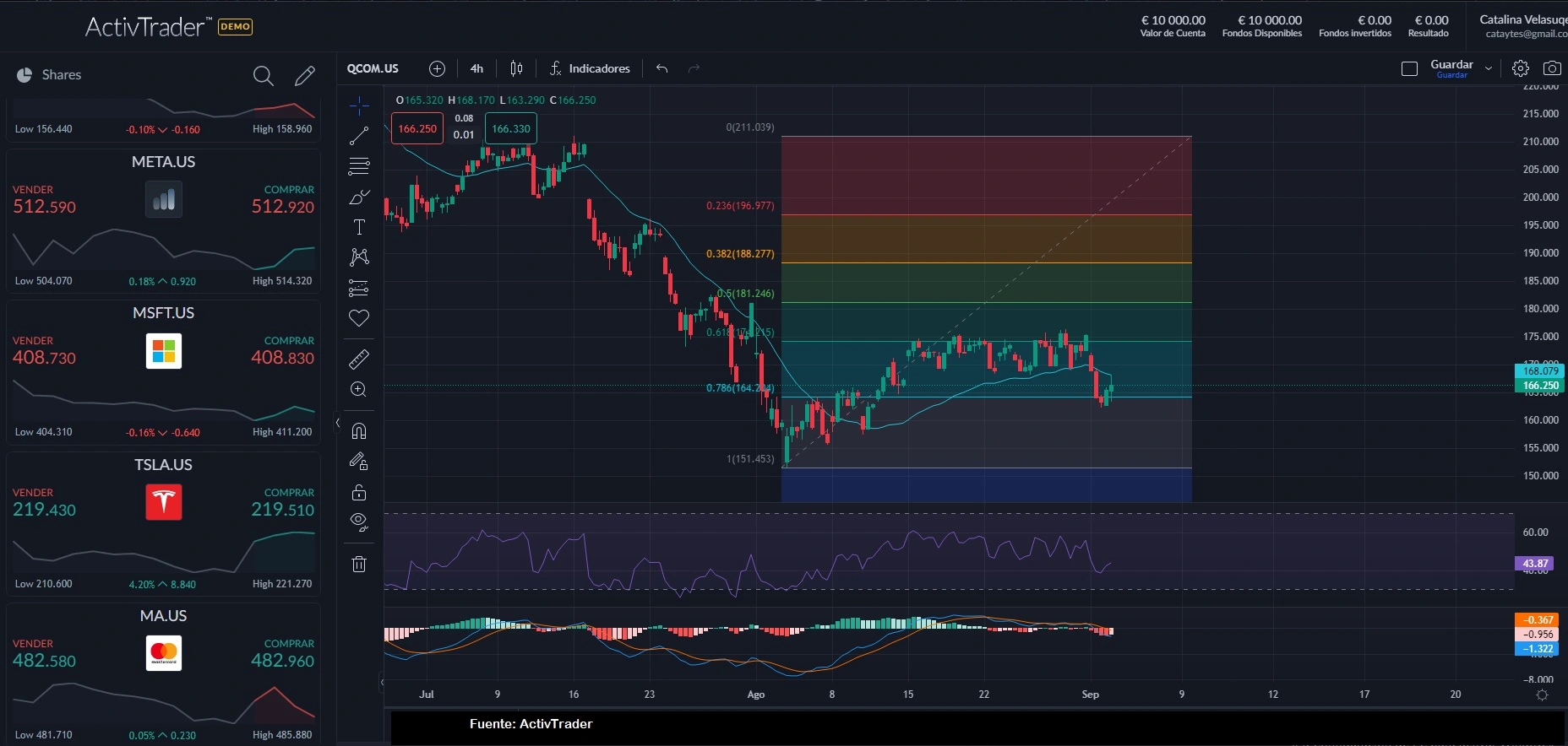 Desde una perspectiva fundamental, Qualcomm ha demostrado una notable resiliencia en el precio de sus acciones, lo que refleja su sólida posición financiera en un mercado tecnológico en constante evolución. El enfoque estratégico de la empresa en el desarrollo de tecnologías avanzadas para la industria inalámbrica la posiciona favorablemente en el mercado global. Además, el crecimiento constante de los ingresos y la rentabilidad de Qualcomm la convierten en una opción atractiva para los inversores que buscan rendimientos a largo plazo.